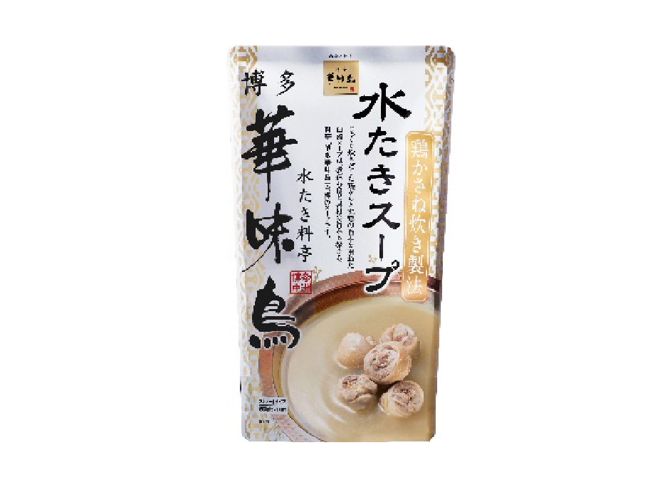 水たき料亭「博多華味鳥」の飲食店舗へ提供する水たきスープは、鶏の足がらと丸鶏を重ねてじっくり炊き出しています。本品も同じ素材・製法・釜にて炊き出したスープを元にすることで、料亭の味に近づけることができました。素材の鶏がらと丸鶏を九州産に限定し、原材料はシンプルに4種類のみとしています。前菜のスープから締めの雑炊までこだわりのスープをご堪能ください。