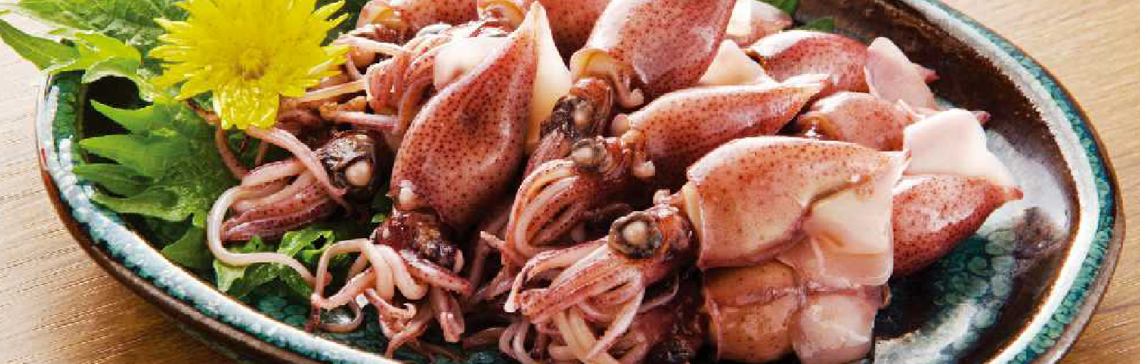 ボイルほたるいかの食べ方で一番のおすすめは『酢味噌和え』です。プリッとした食感と、甘みのある身、ほどよいワタの旨味が、さっぱりとコクのある酢味噌にとてもよく合います。その他甘辛く煮たり、天ぷら、炊き込みご飯などもおすすめです。
