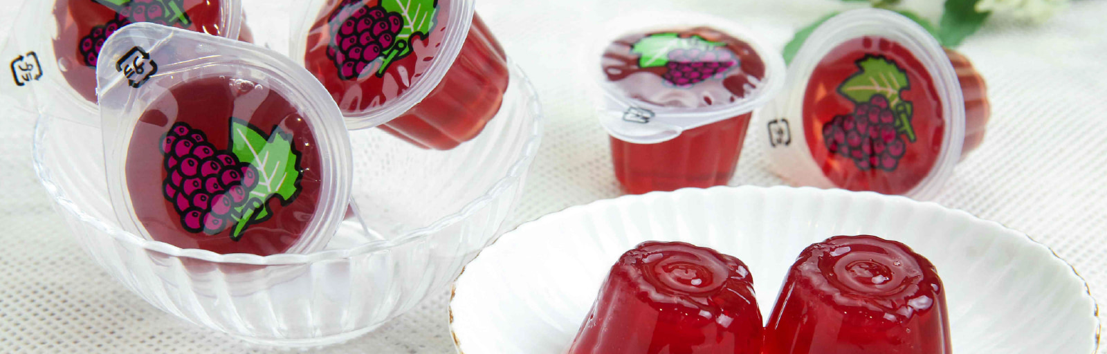 オーガニックぶどう果汁(コンコード)を使用し、一口サイズのミニカップ入りゼリーにしました。