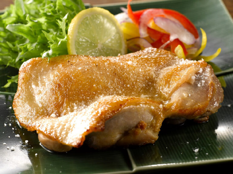 アマタケ チキンステーキ(ソルト&ガーリック) 岩手で育てたフランス赤鶏のもも肉のやわらかい部分(上もも肉)だけを使った、素材をシンプルに味わえる調理済のチキンステーキです。