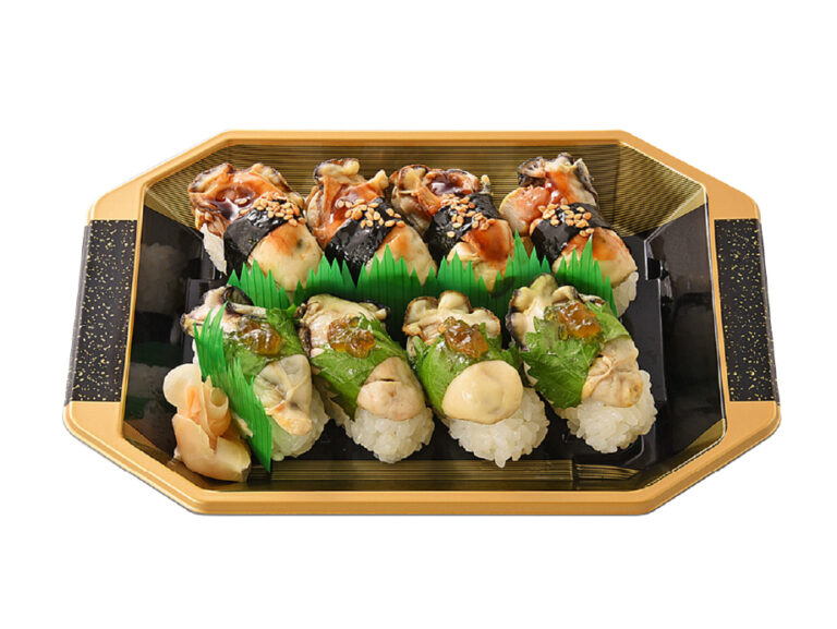 兵庫県播磨灘産蒸し牡蠣の握り寿司 瀬戸内海播磨灘産の大粒の牡蠣を使用した商品です。煮詰めタレとポン酢ジュレの2種類の味付けでご賞味下さい。