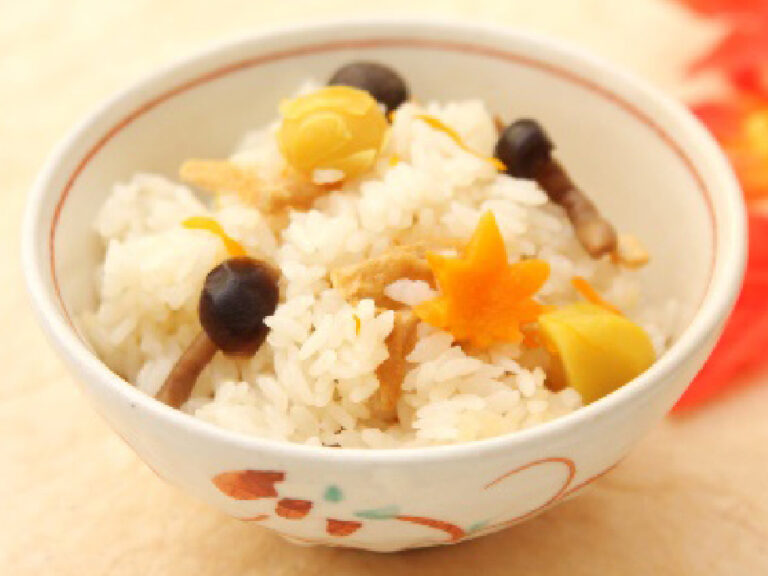 浅田屋 秋の吹寄せご飯の素 国産の栗・銀杏・むかごなど秋の山里の味覚を、色とりどりに揃えました。料亭と同じ手間ひまをかけ、お醤油を控えめにしてあっさりとしたかつおだしで炊き上げます。