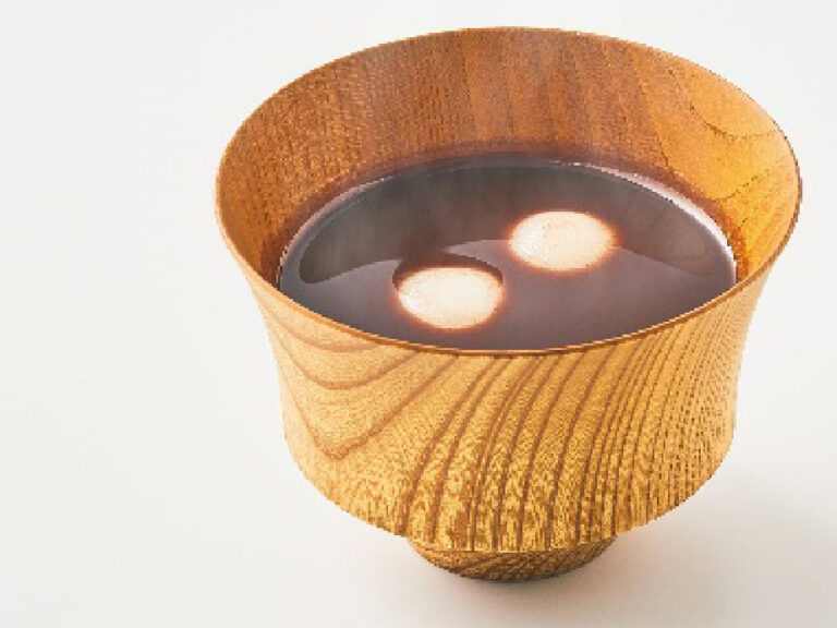 大納言小豆あんを伸ばし、砂糖を加えて煮立てたこしあんでおしるこに仕上げました。