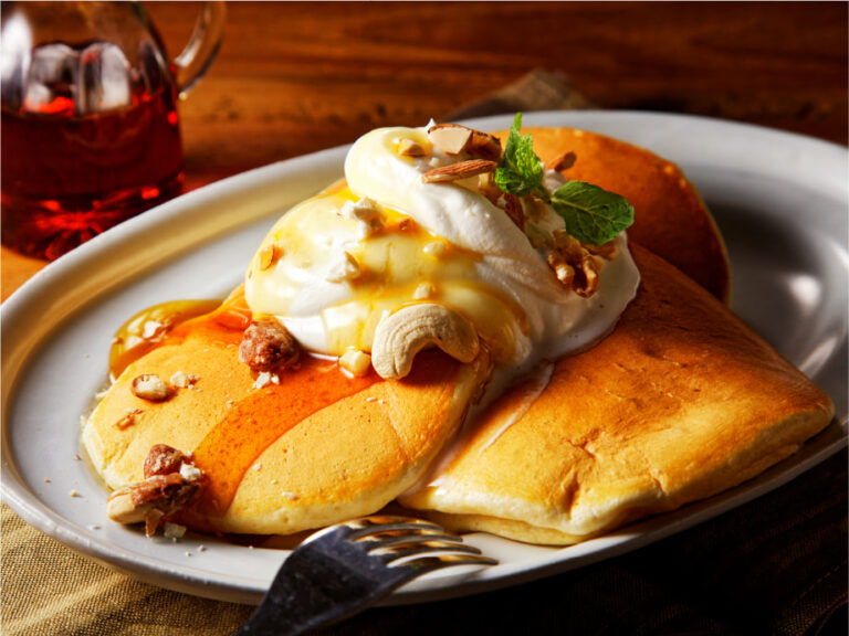 しっとりとした食感と軽い口溶けに仕上がるパンケーキミックス。 -