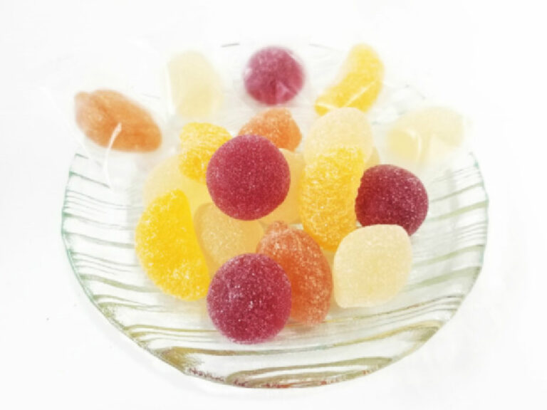 フルーツの形をした一口サイズのゼリーです。国産果汁を使用し、5種類の果物の味わいをお楽しみいただけます。 -