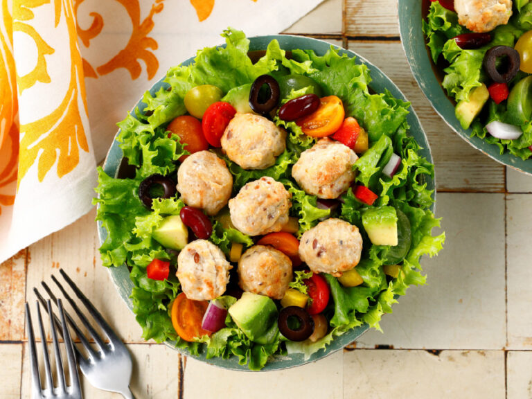 アマタケの鶏肉・あい鴨肉を使った鶏コラーゲン入りのミートボールです。もち麦、アマニ、キヌア、チアシード、アマランサスの五穀を配合し、フランス岩塩と昆布だしで仕立てました。 -