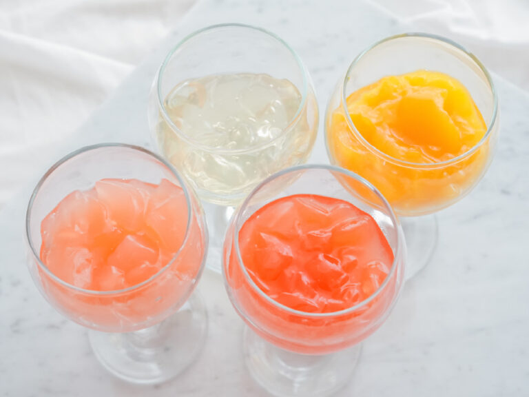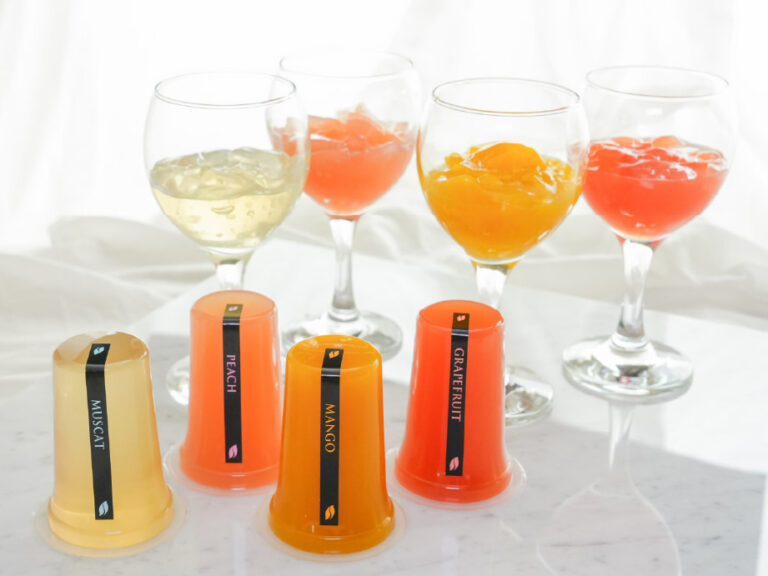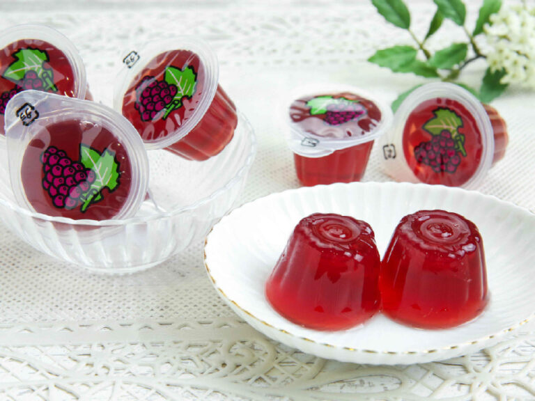 オーガニックぶどう果汁(コンコード)を使用し、一口サイズのミニカップ入りゼリーにしました。 -