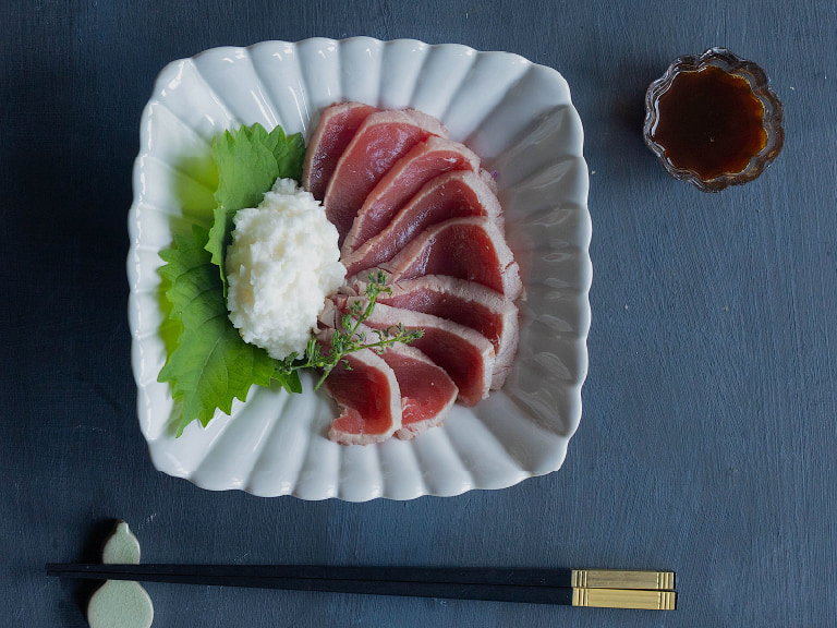 湯引きマグロと長いもの黄身じょうゆ 2人分(2025.10.08)