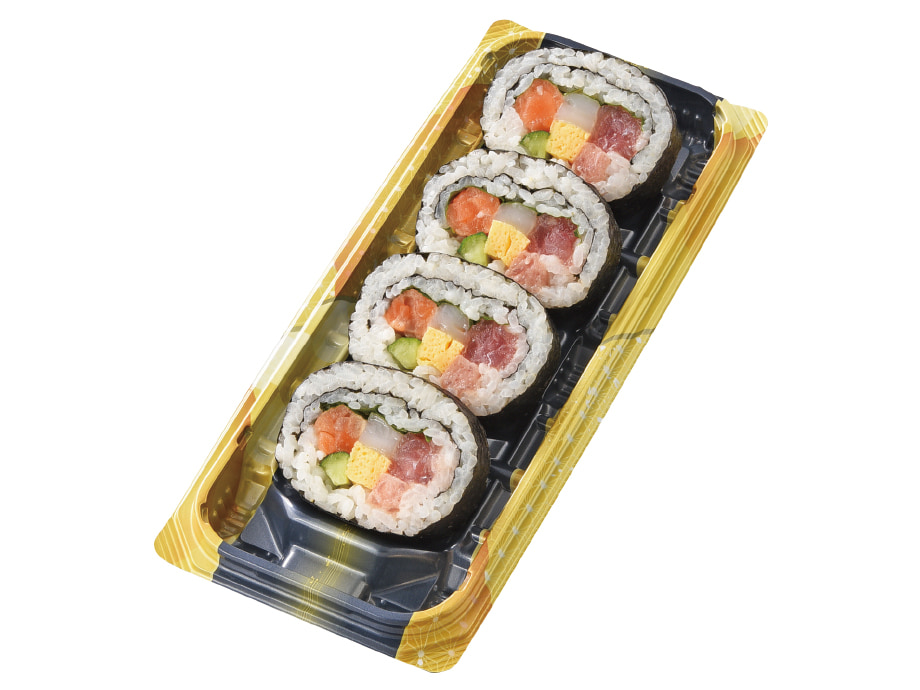 2種のまぐろとサーモン・いか・玉子・胡瓜を彩り良く巻き込んだ海鮮巻です。
