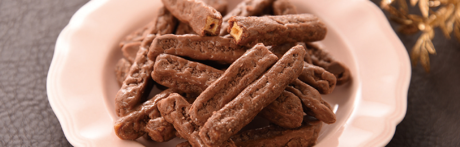国産原料の芋けんぴに口あたりなめらかなミルクチョコをコーティングしました。