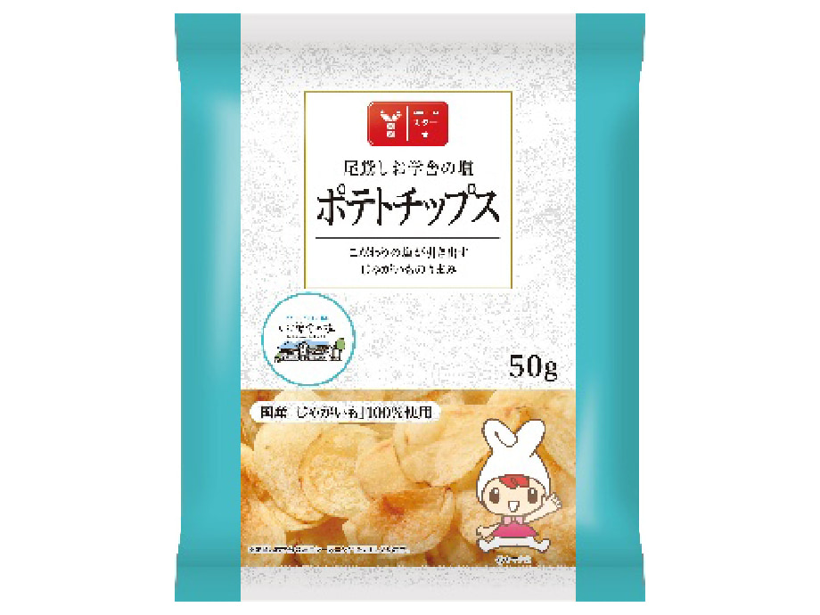 尾鷲しお学舎の塩を使用。かどの取れたやさしい味わいのお塩がじゃがいものうまみを引き出す、お塩にこだわったポテトチップスです。
