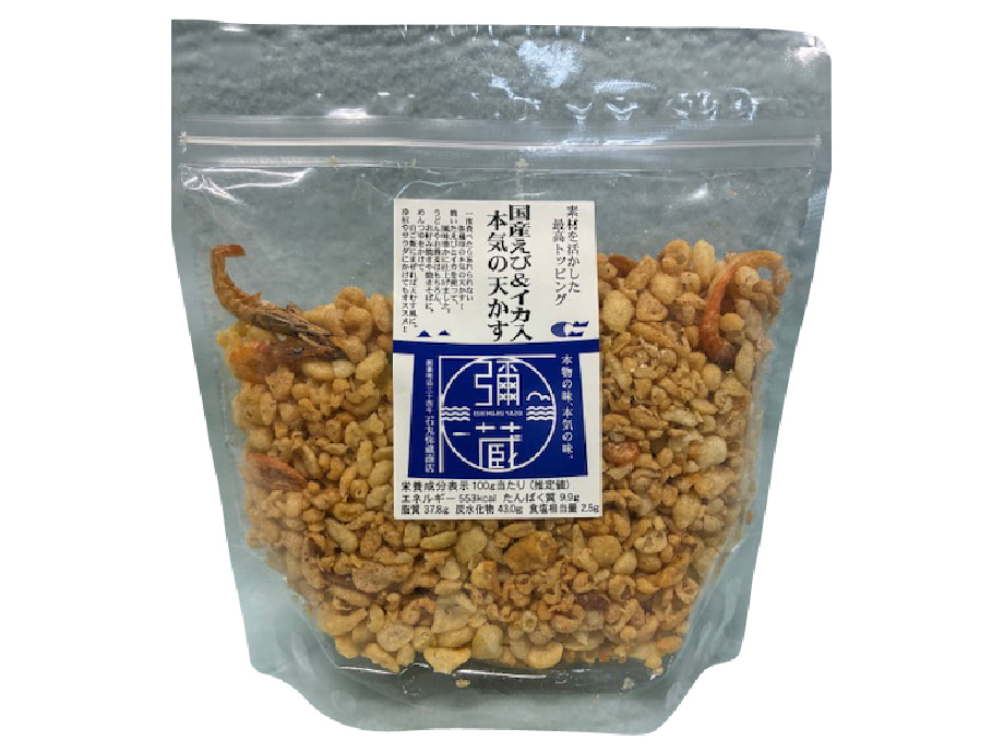 一度食べたら忘れられない弥蔵印の本気の天かすです。 商品の特長、こだわりの紹介 一度食べたら忘れられない弥蔵印の本気の天かす。焼いたえびとイカを使って、風味豊かに仕上げました。うどんはもちろん、お好み焼きや焼きそば、サラダにも。 いち押し商品 旬の商品 バイヤーいち押し商品 自社製造商品