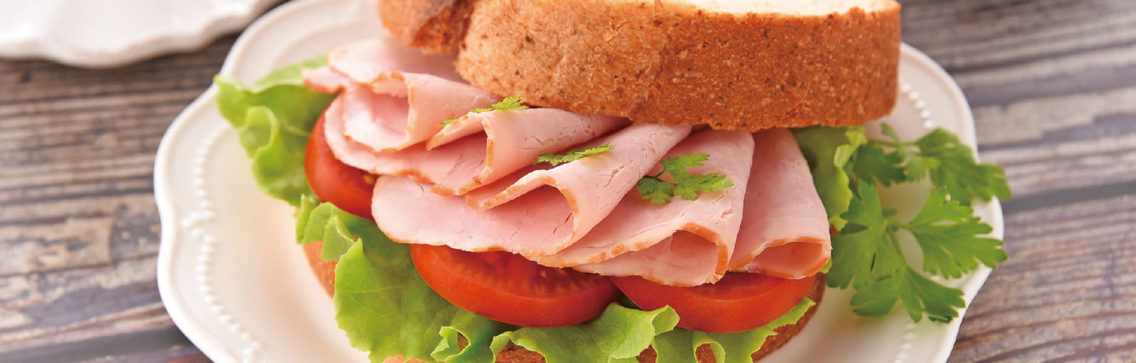愛知県産の豚肉「みかわ旨香ポーク」のモモ肉を使用して作りました。しっとりした食感が特長のモモハムです。