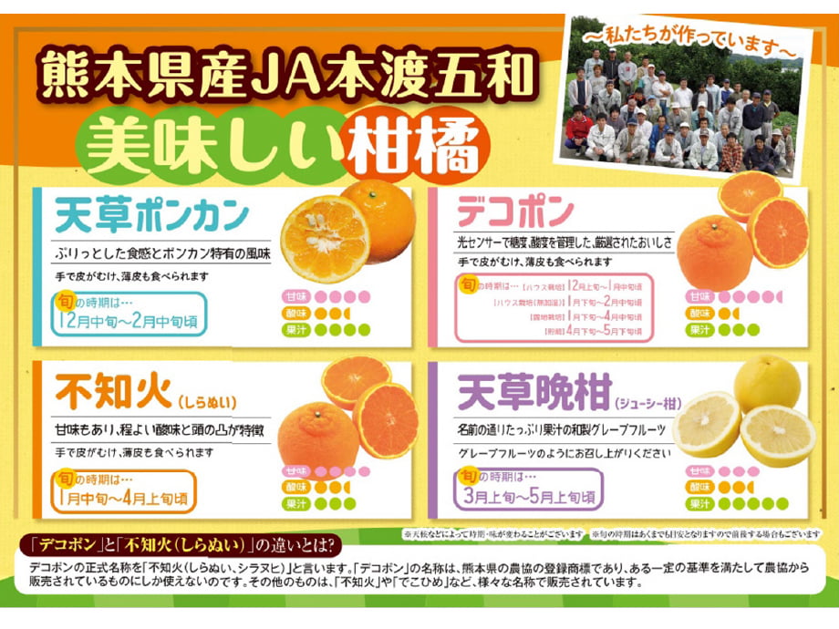「柑橘」は甘さ、口いっぱいに広がるジューシーさが特徴の【春】の訪れを感じる果物です。この時期に旬をむかえる色とりどりの柑橘を揃えました。
