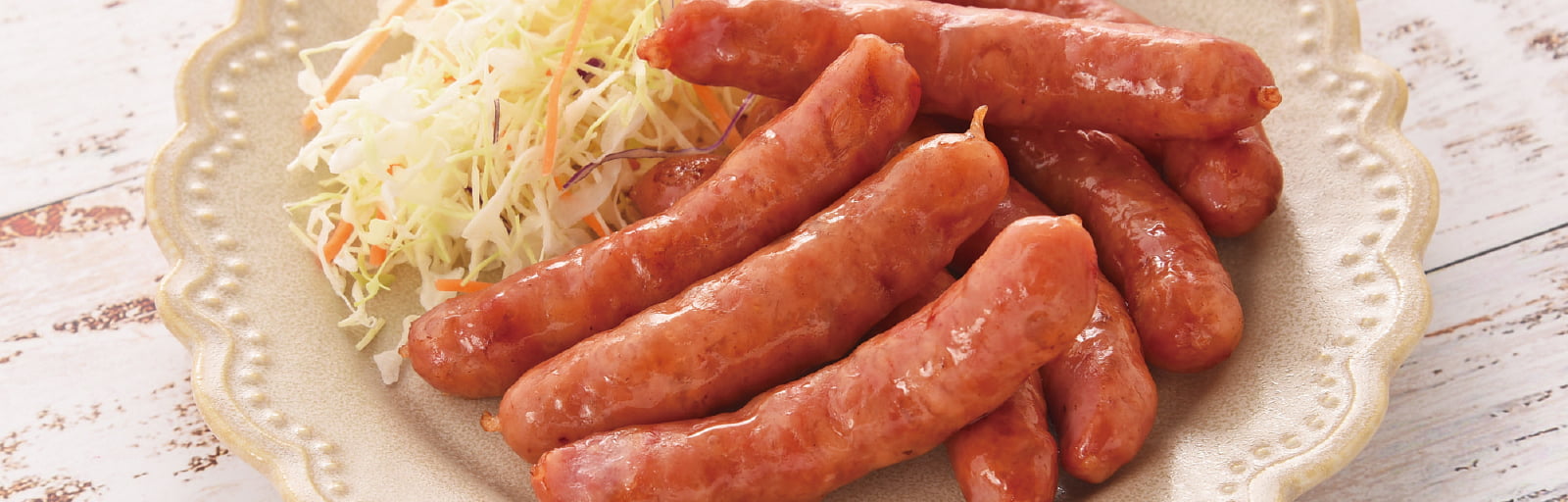 愛知県産の豚肉「みかわ旨香ポーク」を100%使用したあらびきソーセージです。岩塩で味を引き締めており、豚肉の旨味を強く感じられる逸品です。