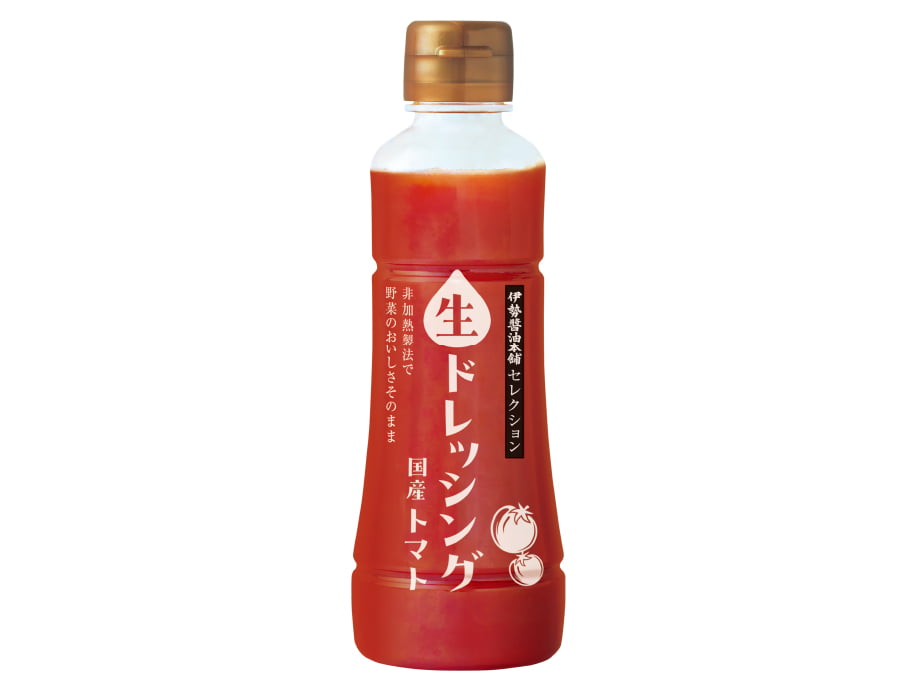 こだわりの素材を使用した生ドレッシングです。原料のトマトは、熊本八代産の規格外生トマト+国産生トマトを約1個分(中サイズ)使用しています。原料処理から充填までのすべての工程で加熱処理を行っていない「非加熱製法」なので、野菜の食感・旨み・甘みがそのまま残っています。
